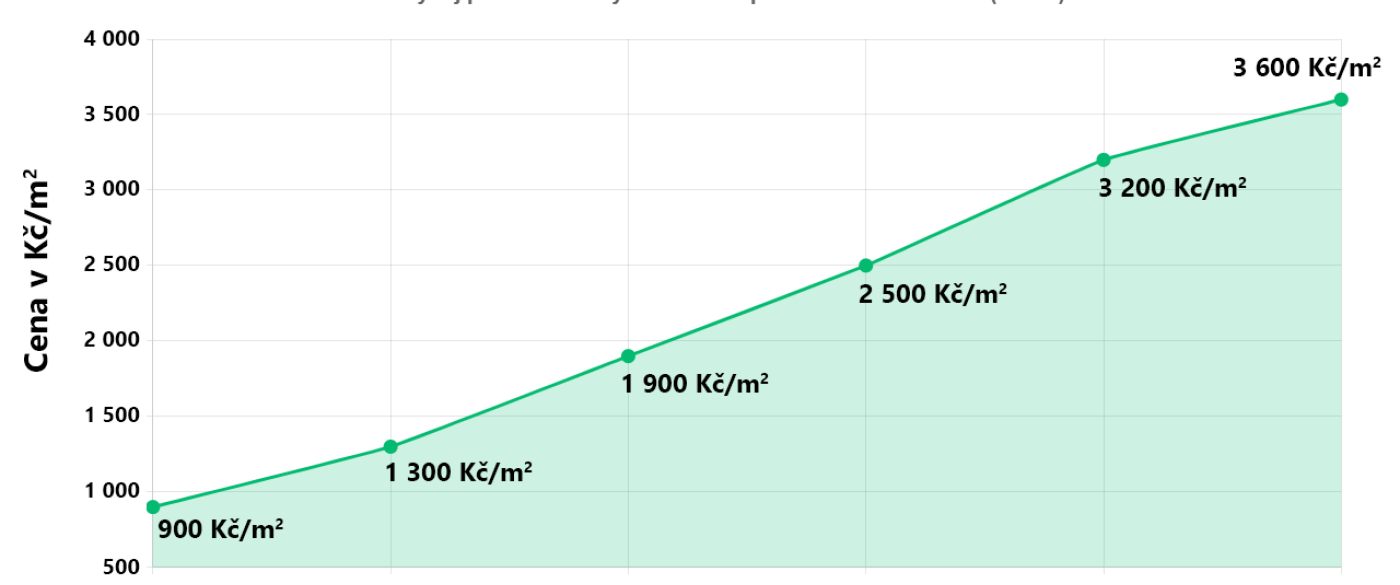 - 2015–2018: V tomto období se průměrná cena pohybovala okolo 800 – 1 200 Kč/m². Pozemky byly relativně dostupné a poptávka stabilní.
